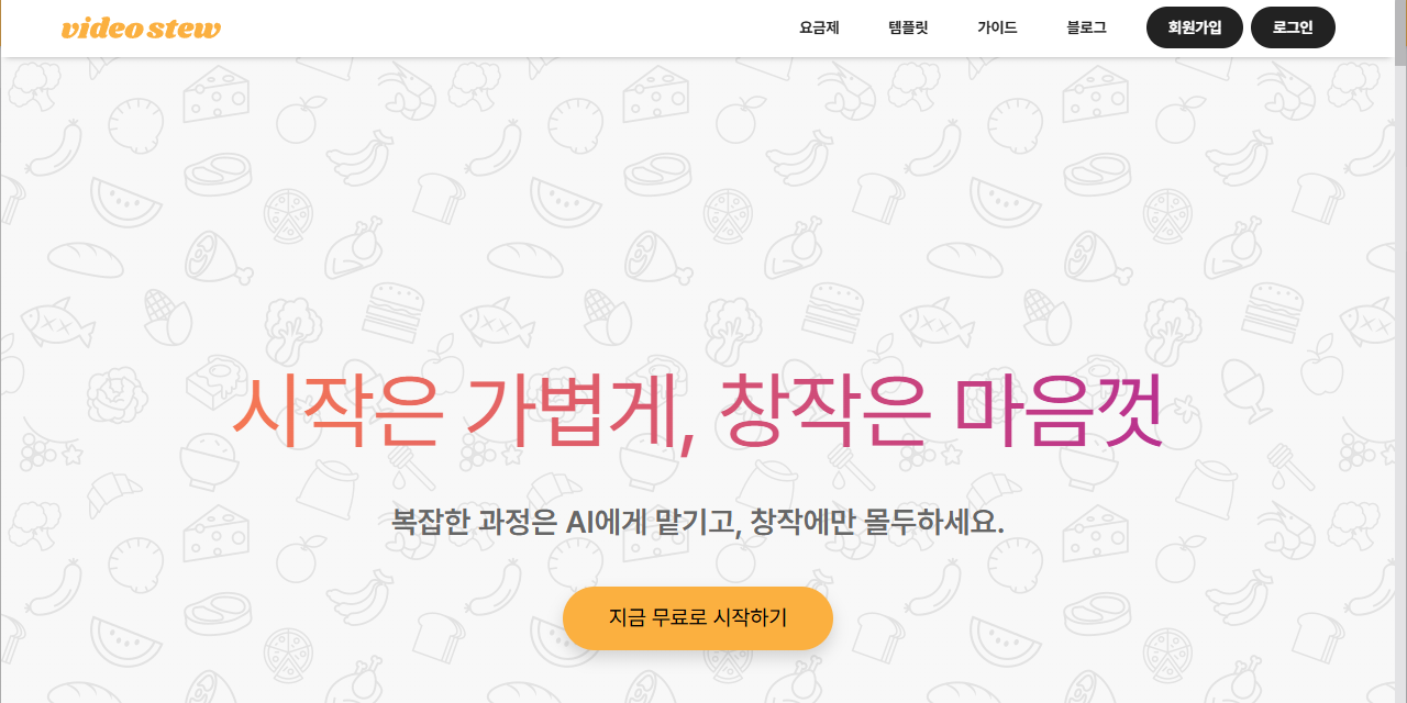그러던 중 인터넷 검색하다가 비디오스튜(videostew.com)라는 사이트를 발견했어요. AI 기술을 활용해서 쉽게 영상을 만들 수 있다고 해서 호기심에 가입해봤습니다.